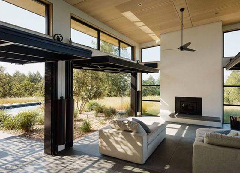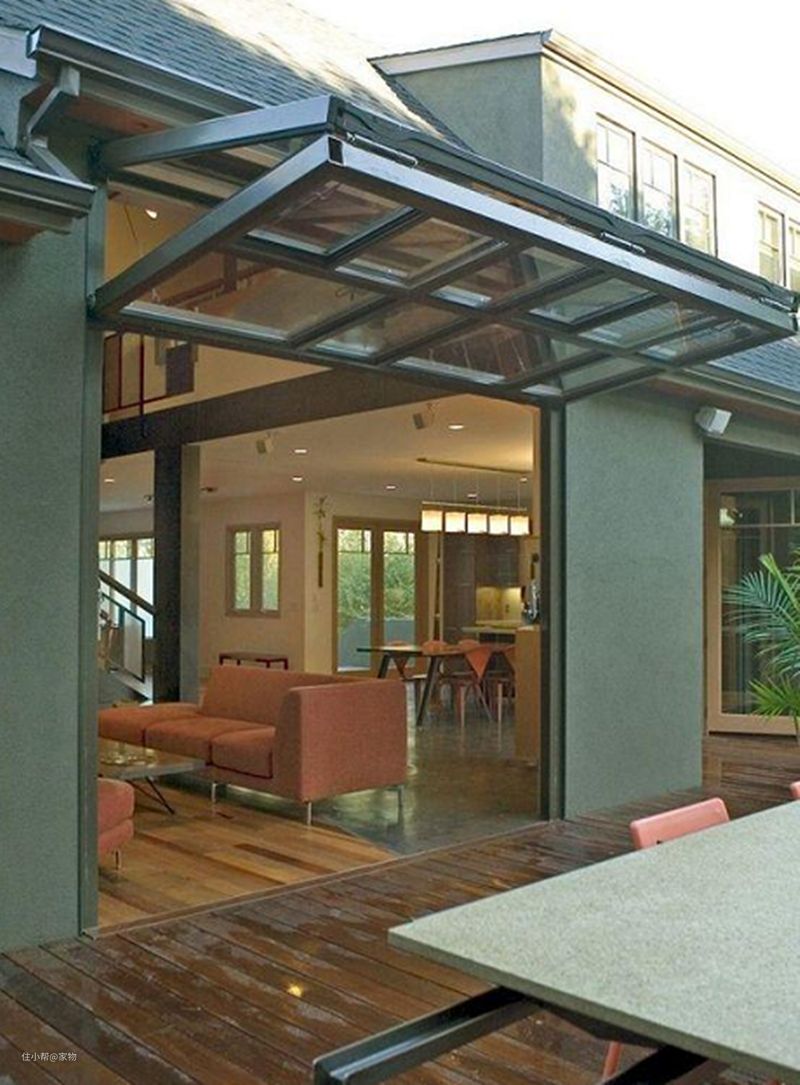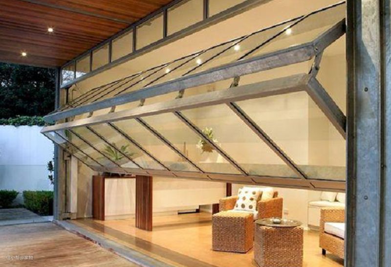 这种可上下折叠的玻璃门,使用起来要远比传统折叠门跟好用,如果宽度足够的话,甚至都可以将自己的汽车开到室内,这设计着实令人佩服。