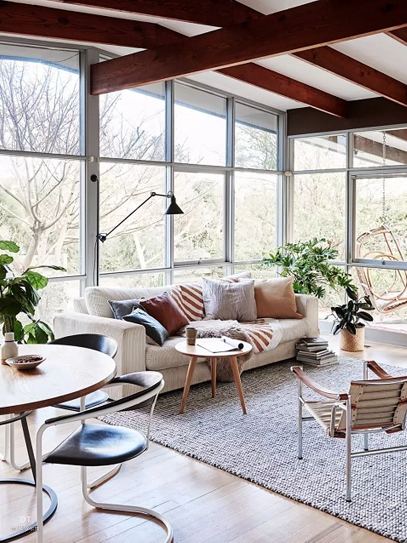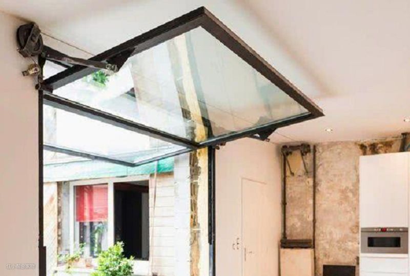 不仅是门,就连窗户都可以打造成这种款式的,即使开窗也不会碍事,玻璃窗被折叠在上方空间,这样一来就可以在室内尽情玩耍,再也不用担心碰头了。
