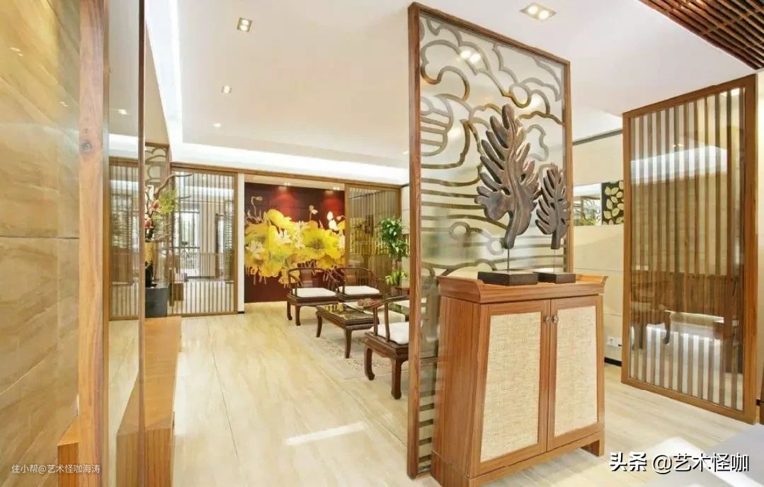 - 第一方面:注重通透性,设计师建议利用镂空设计、柜柱结合、花格、屏风、立柱、半柜悬挂、纱帘等比较通透的元素作为隔断,保持室内空气流通的同时不会产生压抑感。