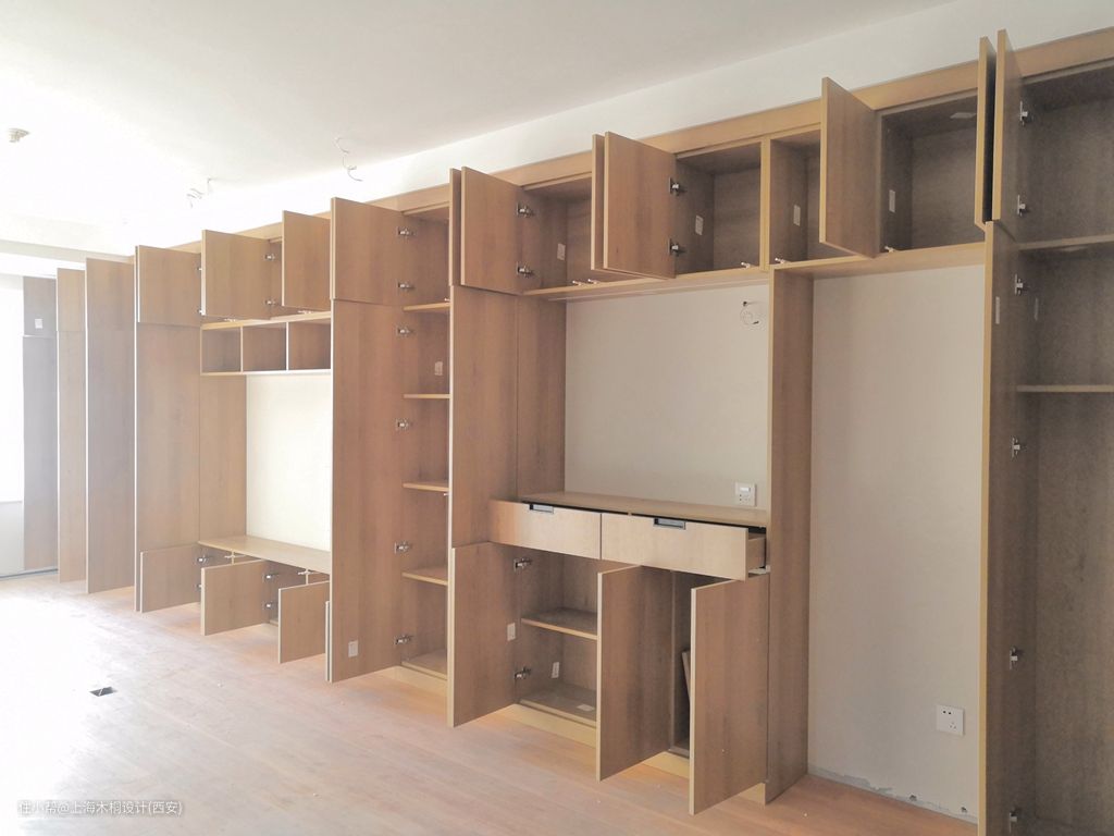 这样一面墙的柜体,到底能放多少东西?我们一起算一下储物量: