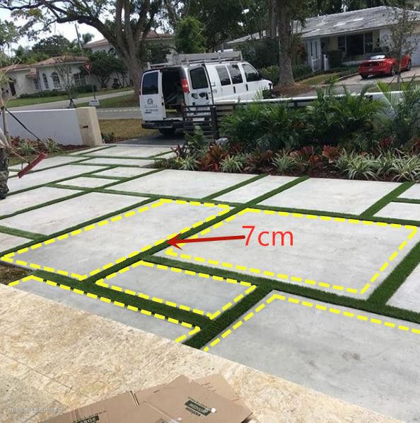 Step4:在水泥板预留的7cm缝隙中种植草坪