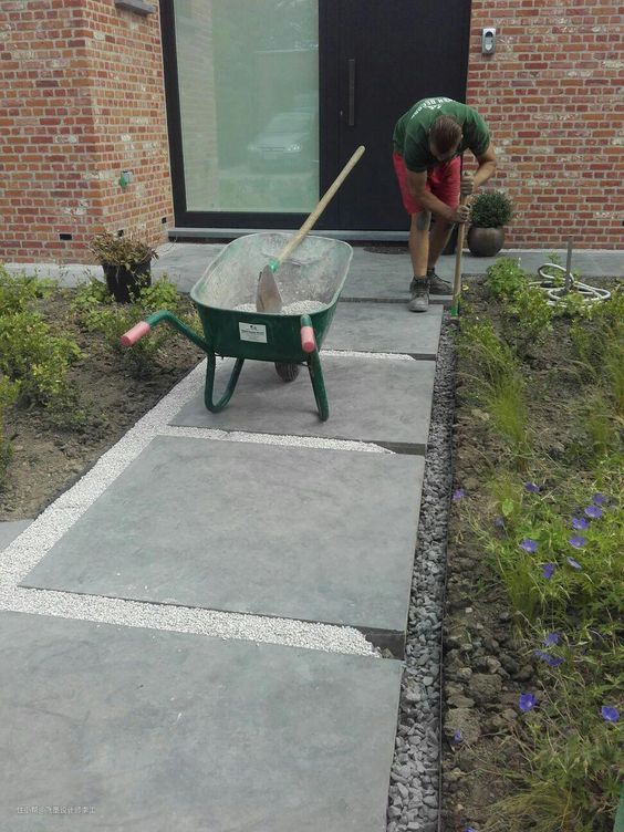 在7cm宽的缝隙中,种植草坪,然后浇水2次,等到草坪稳定扎根之后,庭院地面就可以正常使用了,这可比满地铺红砖块要结实实用,至少缝隙里下雨天不会溅水出来。