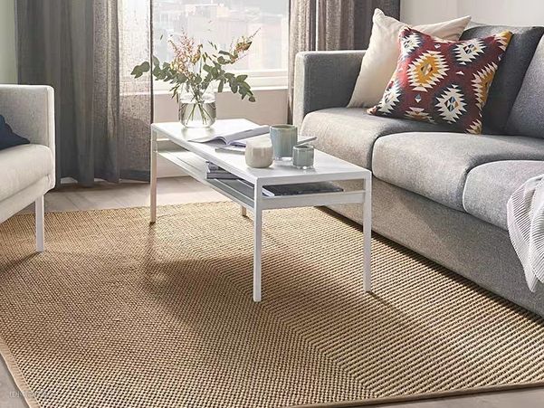 沙发上有草绿色、粉绿色的毛毯、偏黄的嫩绿插花,跟背景相互呼应。春天来了~