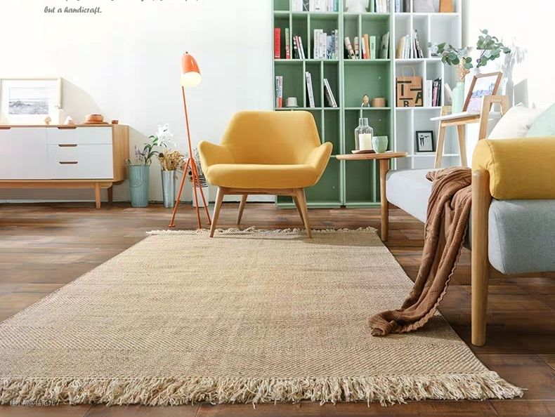 小面积偏褐色的姜黄色稍稍点缀下,和地板颜色相得益彰,不会太突兀。