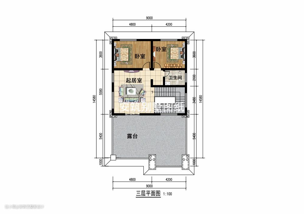 别墅三层最大的亮点莫过于这个宽敞的露台了吧,能够满足日常晾晒,偶尔露天烧烤,或者是空中花园都能够满足。