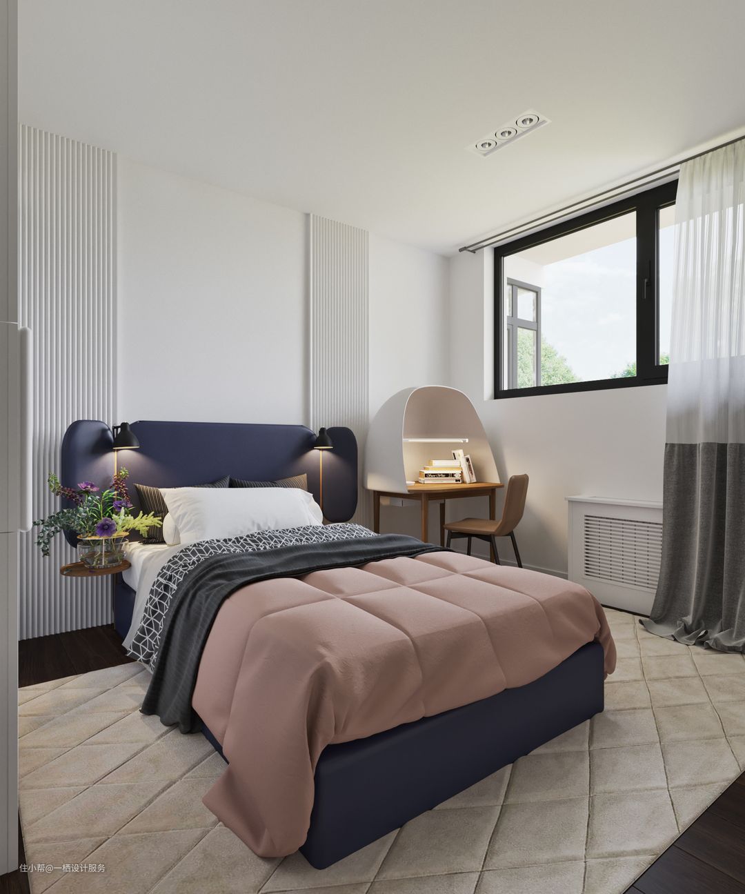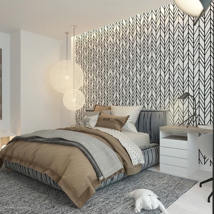 贴墙纸也是设计卧室背景墙的一个比较简单的方法,墙纸不仅能够增强平面墙体的立体感,还可以提高空间的设计感。墙纸的图案、花纹、材质都有很多不同的选择,根据经济预算和自己喜欢的风格挑选即可。