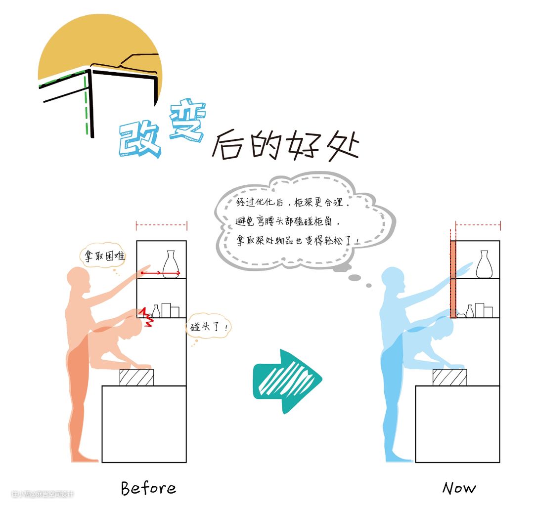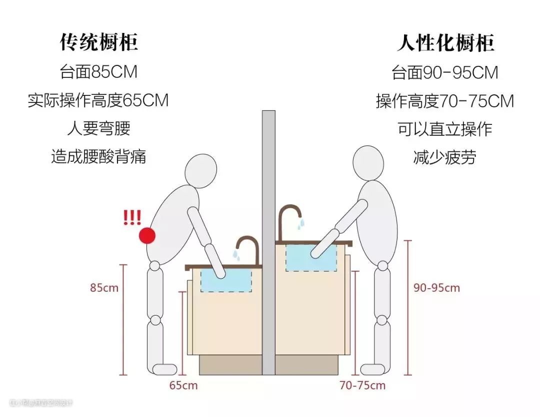 舒适的橱柜高度=身高/2+5~10 (cm)