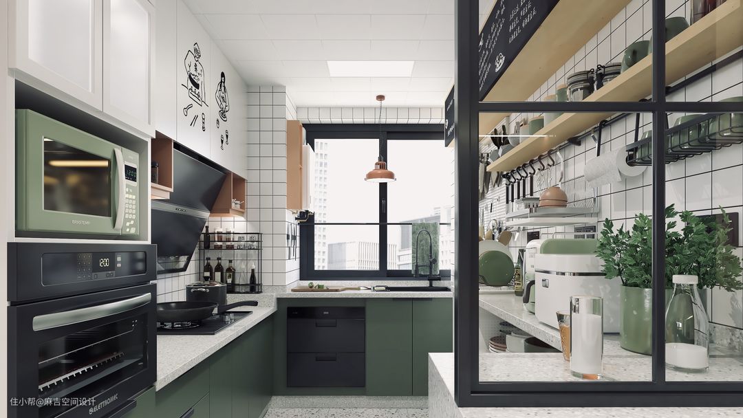 当然,保持厨房门窗通透,保持一个和谐的宽阔空间,人的心情也会愉悦很多。