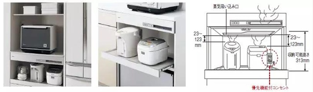 所以尽量避免狭小空间内使用此类电器,一种是使用抽拉隔板在使用时做个空间换位,第二种是在上方增加蒸汽导流板,避免蒸汽直出板材。