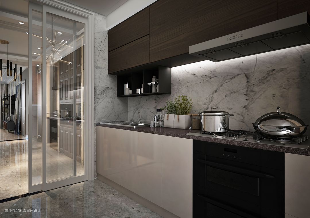 作为重要功能的承载区,厨房的造型设计其实还是没有太多套路的,基本上根据空间就可以一眼打量出合理的形状。