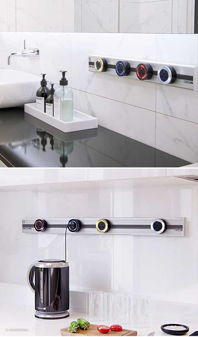 在考虑美观和安全性的前提下,这里分为俩种插座预留说明,其一是传统的墙体预留暗盒,安装五孔或者单插等;或者用横轴可移动式插座,保证足够的数量够使用。