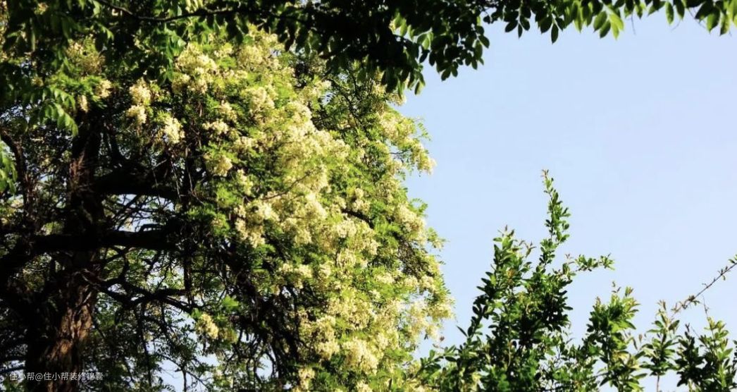 国槐是庭院常用的特色树种,其枝叶茂密,绿荫如盖,适作庭荫树,槐树木质坚硬,可为绿化树、行道树等,在风水上被认为代表"禄",古代朝廷种三槐九棘,公卿大夫坐于其下,面对三槐者为三公,因此槐树在众树之中品位最高,镇宅有权威性。