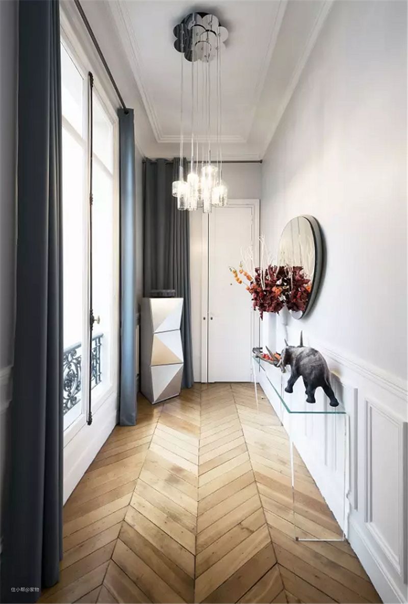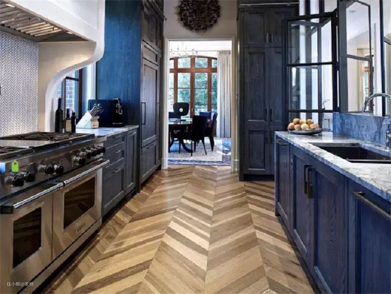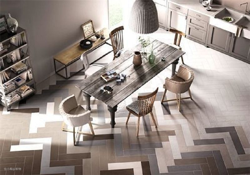 最后就是混搭铺法了,在铺设人字形地板的时候,除了实木材质外 ,还可以在其中搭配一些其它材质,整体呈现出来的效果也是很以后特色的。
