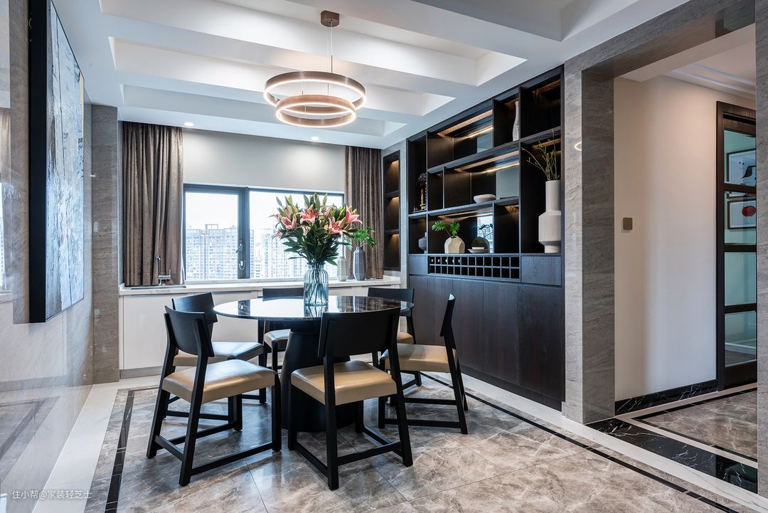 吊顶除了遮蔽功能,还能在不知不觉中把同一片公共区划分出两个不同的区域。