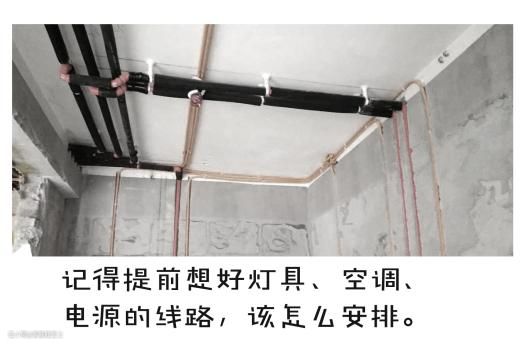 照明电源、空调、视频音频线路、及灯具安装位置等问题,都要事先预留。才能将他们隐藏起来,否则以后只能走明线,影响美观。