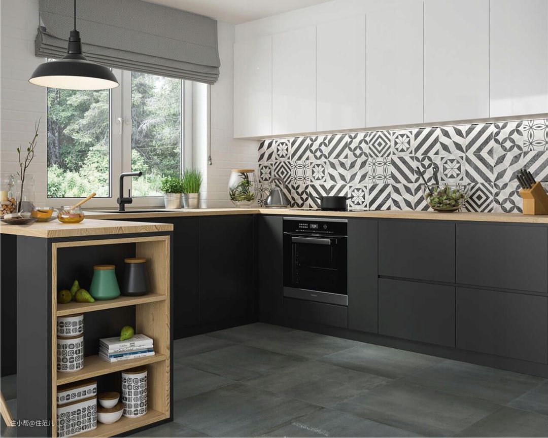 喜欢带一点柔光的瓷砖,就用白色或者灰色系的抛釉砖,比微晶石看起来高级得多。