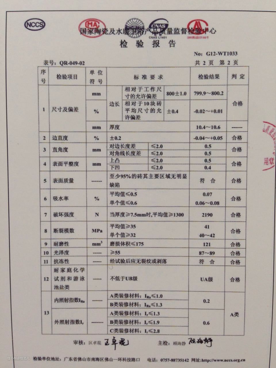 国内权威的瓷砖检测报告都会带有CMA、CNAS、CLA的印章。