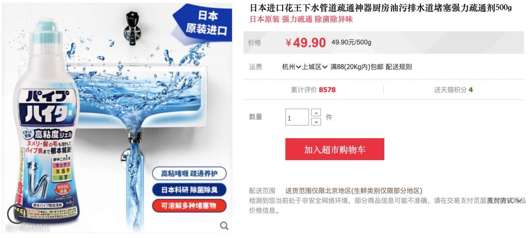 厨房水槽也可以用,还有花王这个厨房水槽疏通剂、德国Kret管道疏通剂,也是长期回购款
