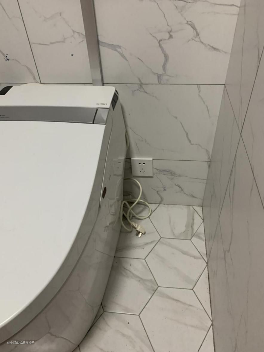 台盆左侧是开关+浴霸开关+五孔插座,离地1.03米,镜子后还有一根线,为灯带和电子除雾功能而留。右侧是一个带灯的可抽拉化妆镜。壁龛内部还有两个插座,方便电动牙刷水牙线的充电。浴缸旁预留了一个插座,电线预留,暗装了电热毛巾架。