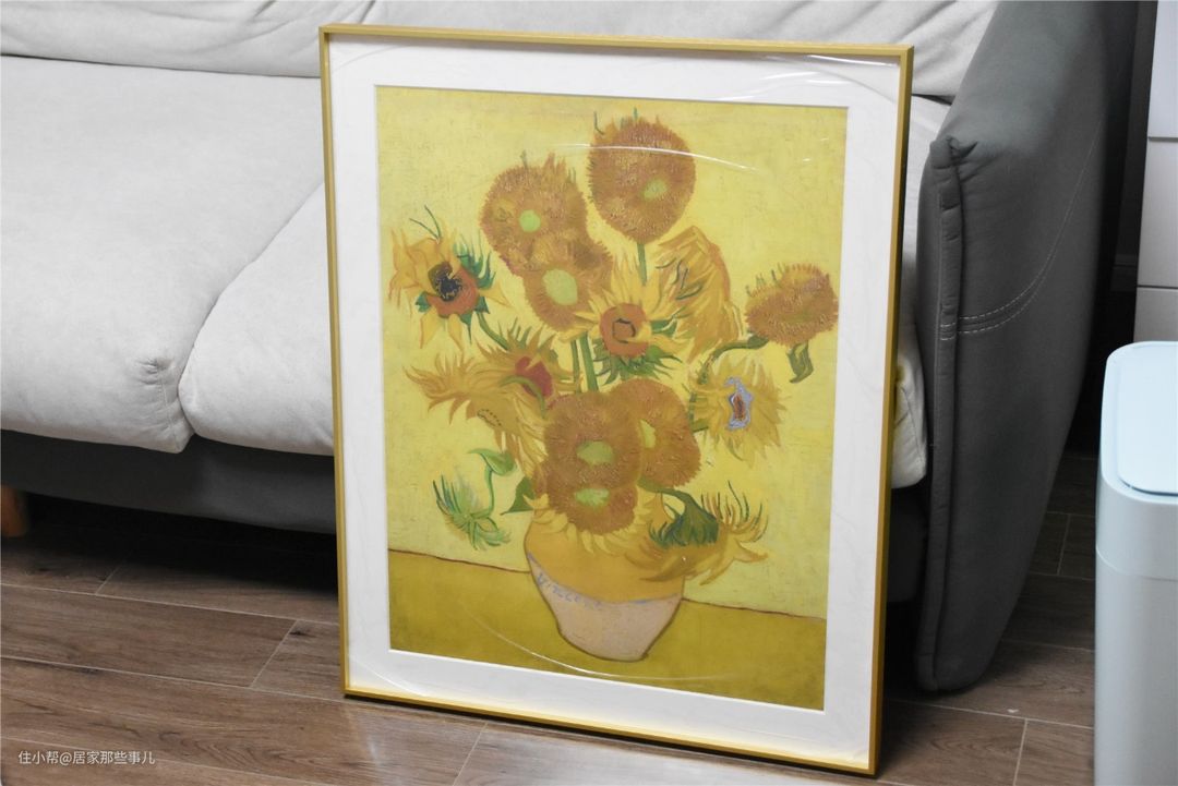 对于买画我是个冲动选手,没有提前量尺寸直接就买了,好在家里的大白墙地方管够,家里挂婚纱照能提升幸福感,挂梵高的艺术品我想也能提升我这个小家的艺术氛围吧。
