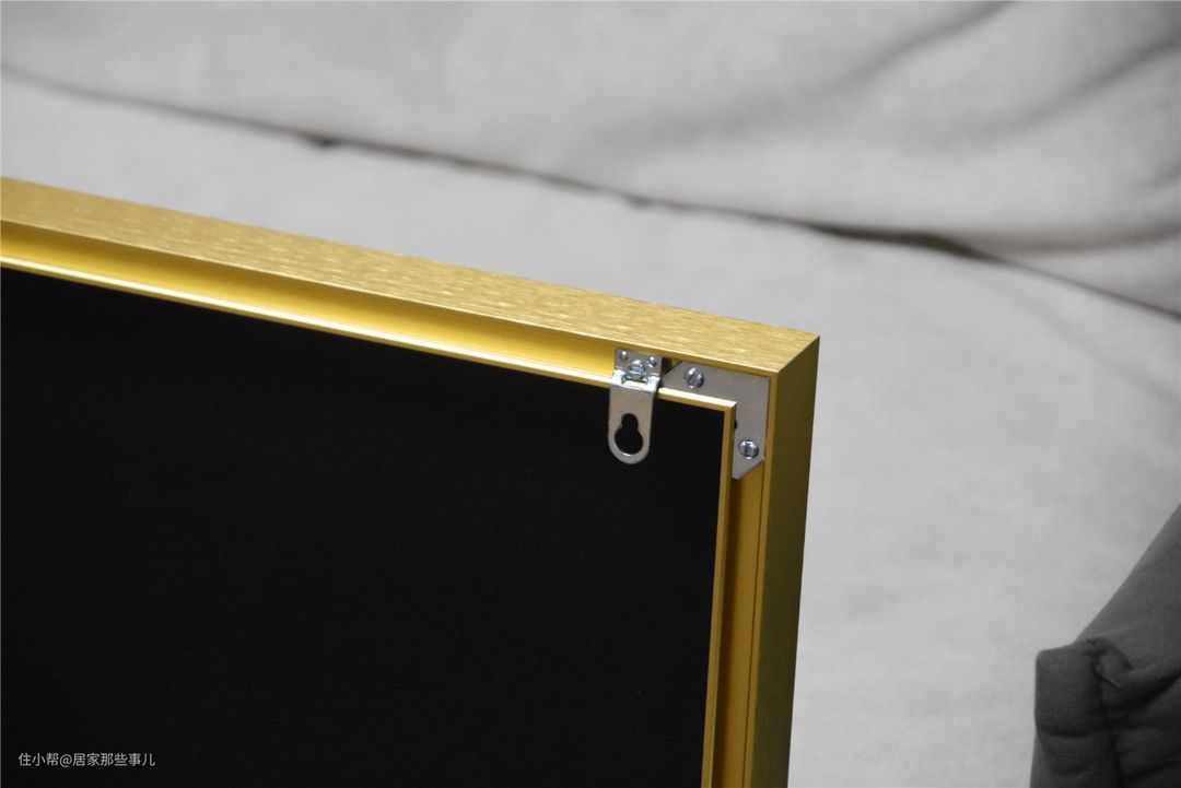 金属的画框细节之处还是比较不错的,缝隙控制的也中规中矩,毕竟是手工的装裱,有些误差是可以接受的。