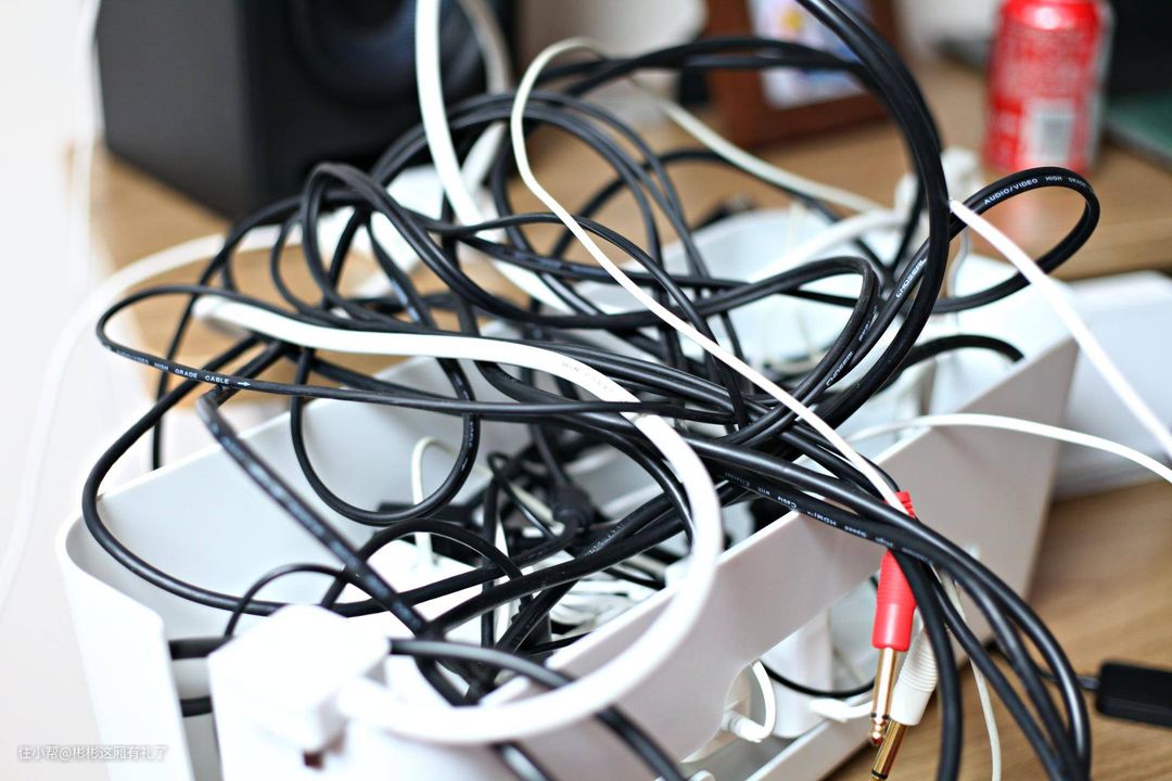 ▲剪不断理还乱,换桌子的第一步,当然就是无线嘛。把机器都搬到新桌子之后,得重新连接各种线材,电源线、HDMI线、音频线、网线等等。为了更好的激励自己提高效率,先把一瓶可乐放在正中央,等全部布置好之后再享受一把嘿嘿。