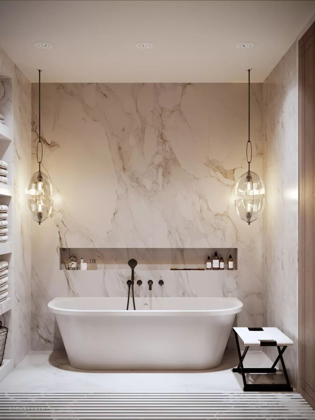 不在墙上做壁龛设计,你都不知道卫生间这么美!