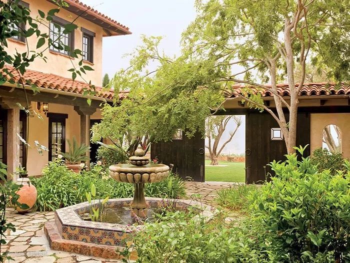 在院子里,设计师安装了一个摩洛哥风格的喷泉。庭院中栽种着中国榆树、山茶花和茉莉。