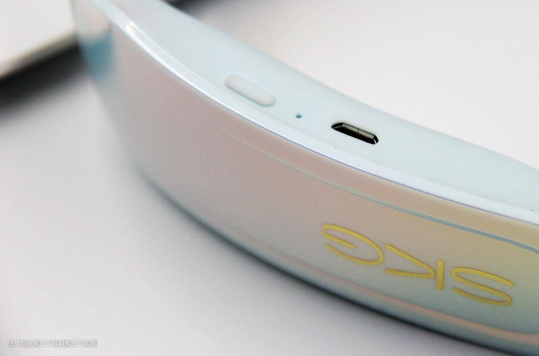 这个颜色真的非常酷炫清新,机身的设计也比较特别,挂在脖子上好像带着一副蓝牙耳机,出街也很时尚。