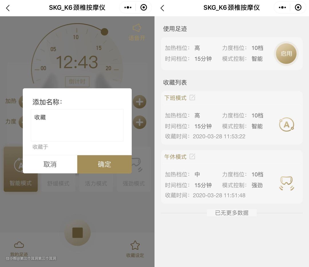 在微信搜索框输入“SKG智能”,进入小程序注册和设备配对后就能使用了。