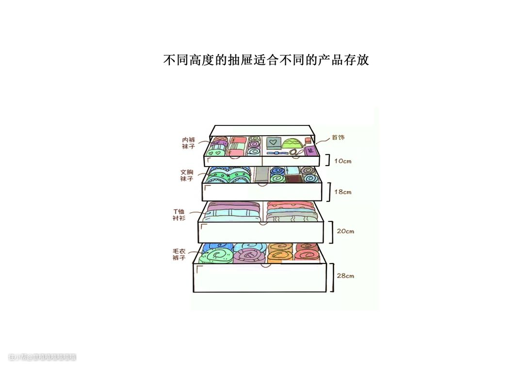 2. 每个物品都有最适合的尺寸,层板间距切记不要随意设计个300-400就了事。尝试用储物盒或者抽屉代替能够极大的提升利用率和便利性。