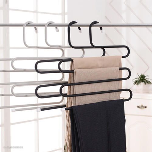 裤子类的储存以挂的方式,普遍采用对折的方式存放。长度可减少一半,提高储存率,此种储存方式层板间距700-800之间为宜。为更大提升储存率建议采用裤架提升利用率。