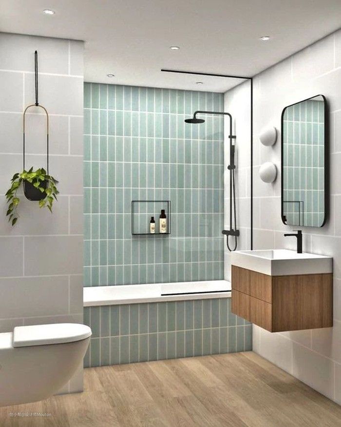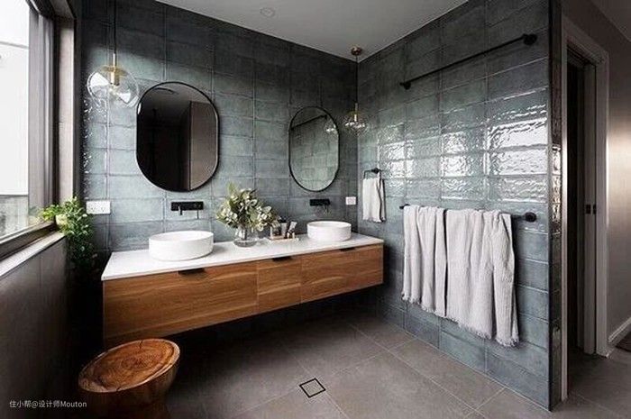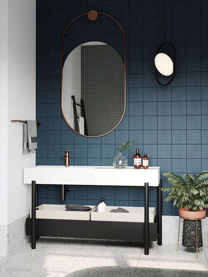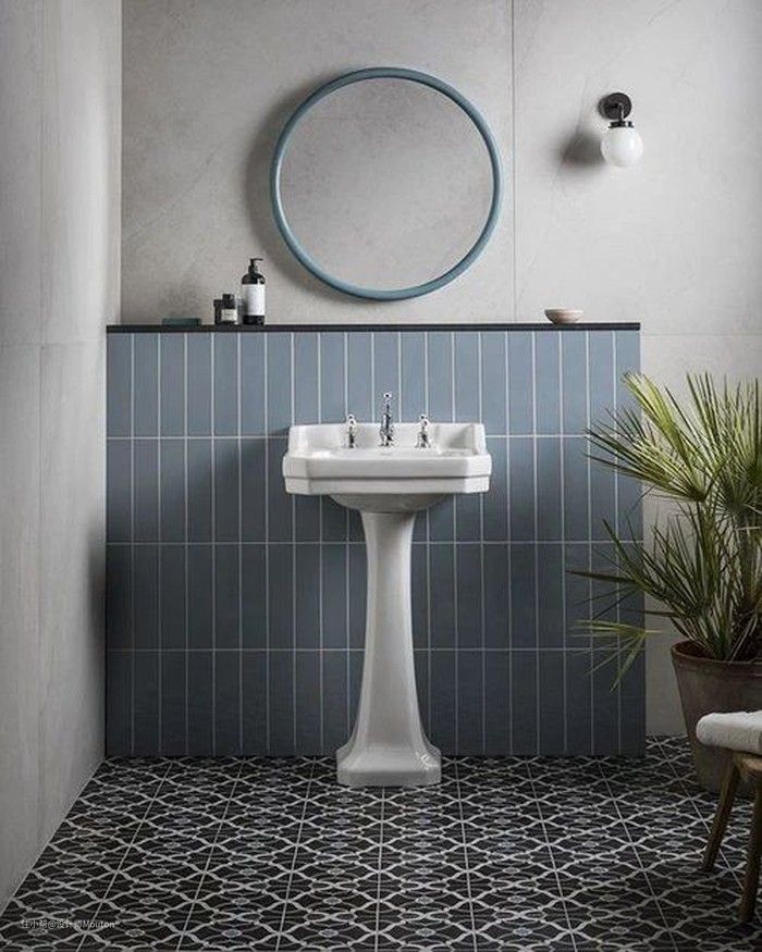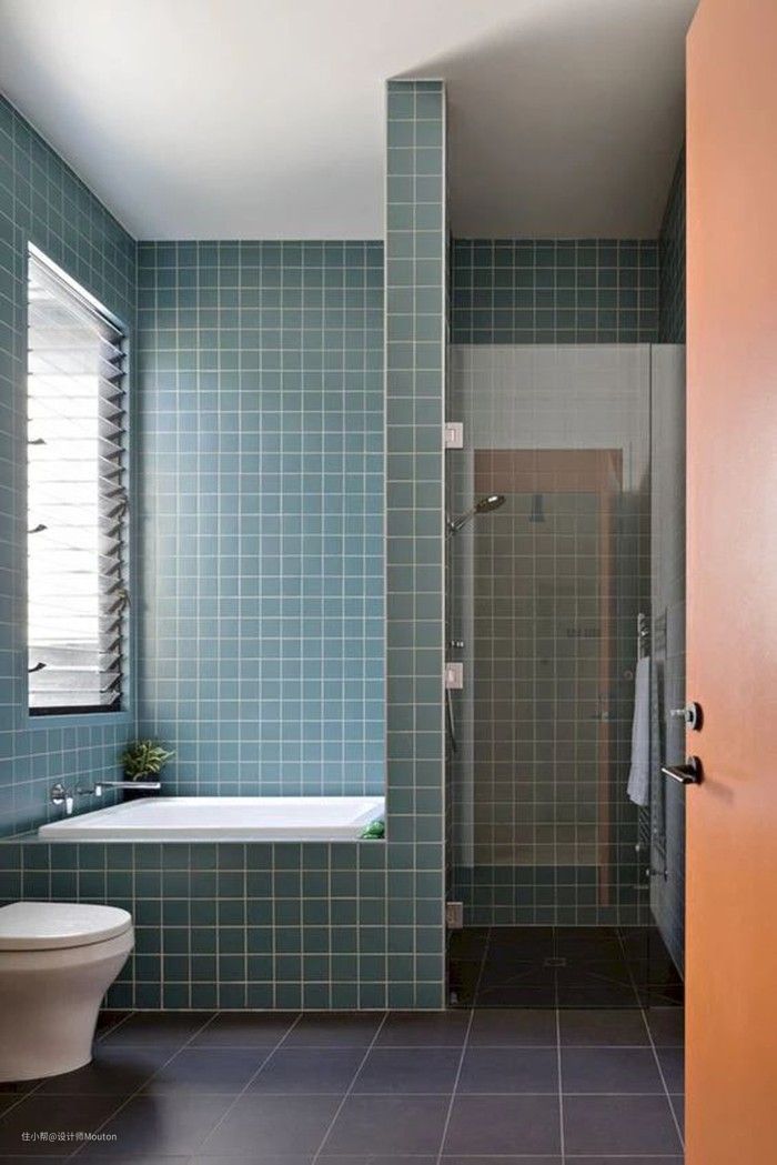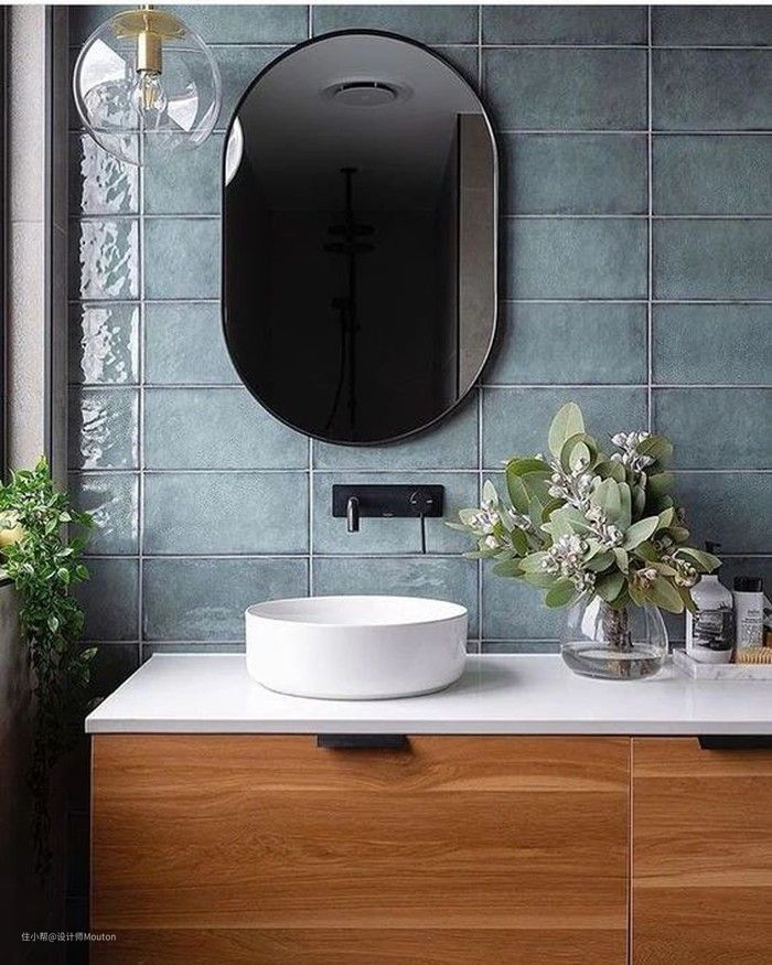 蓝色瓷砖在卫生间的灵活运用,简约大气,给你带来如同在海边游玩的放松的心情。