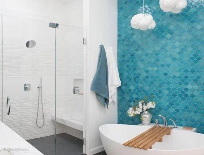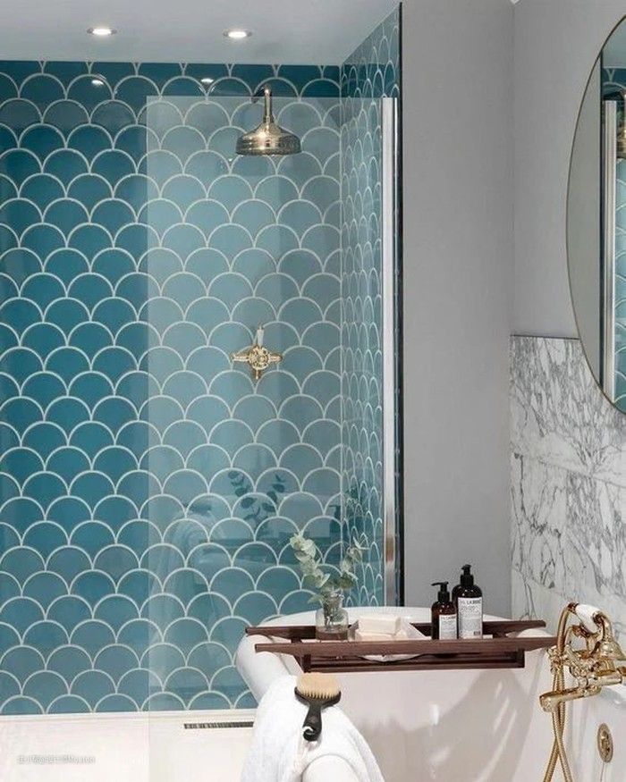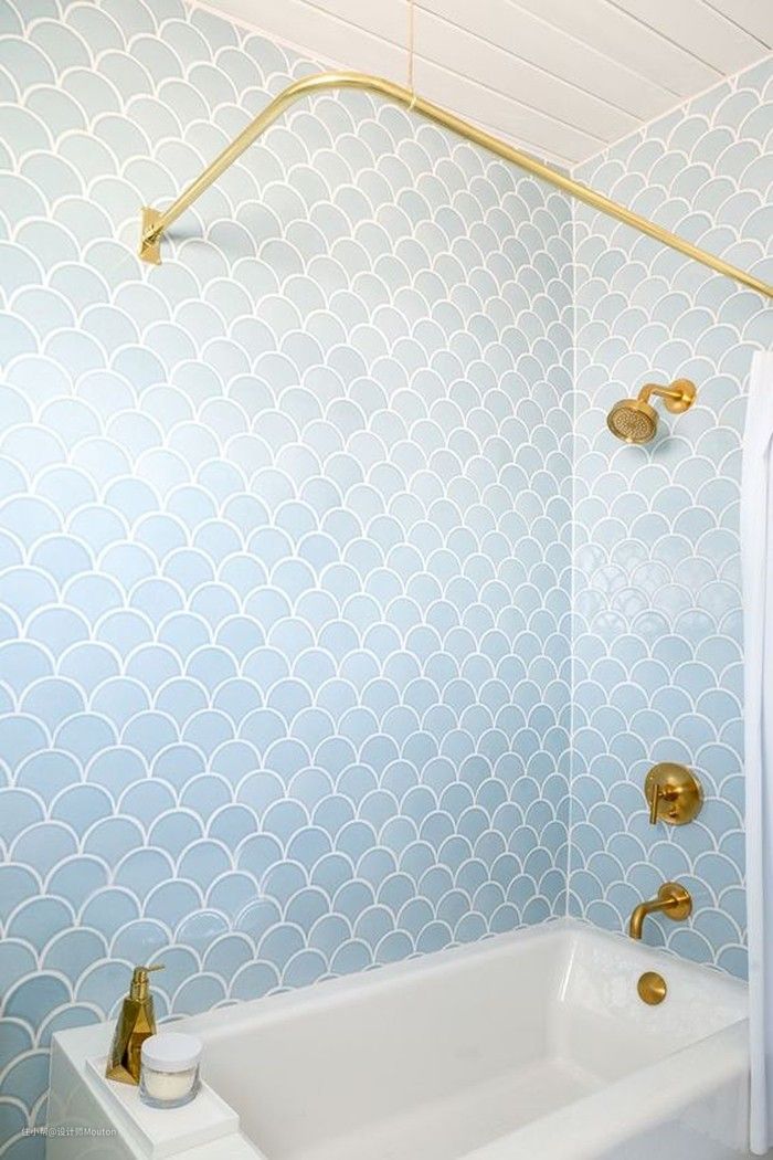 不同明度的蓝色鱼鳞砖还可以打造渐变的效果,这样的结合更有趣味性。