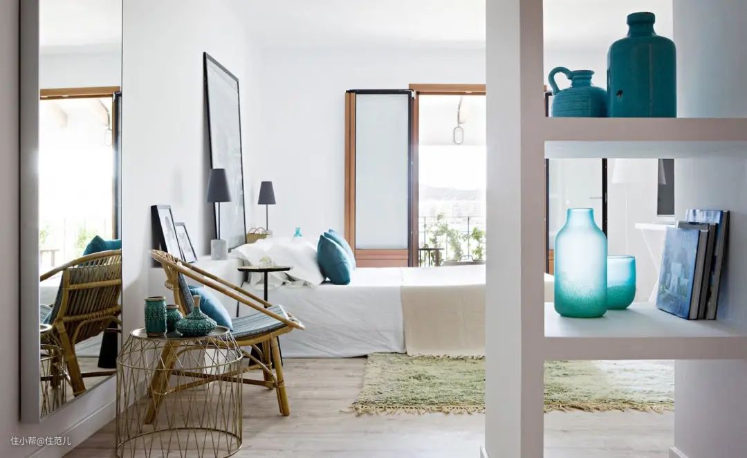 比起带着重型底座的现代家具,藤编家具让本来房间面积就不大的小户型看起来轻巧又整洁。