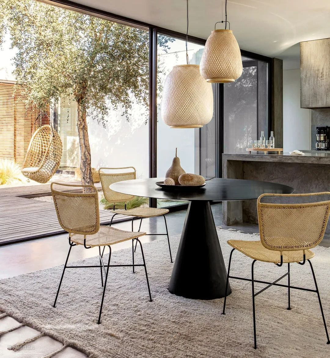 光滑的藤编家具质感,碰撞粗粝的棉麻织物地毯,心情都变得平稳宁静起来。