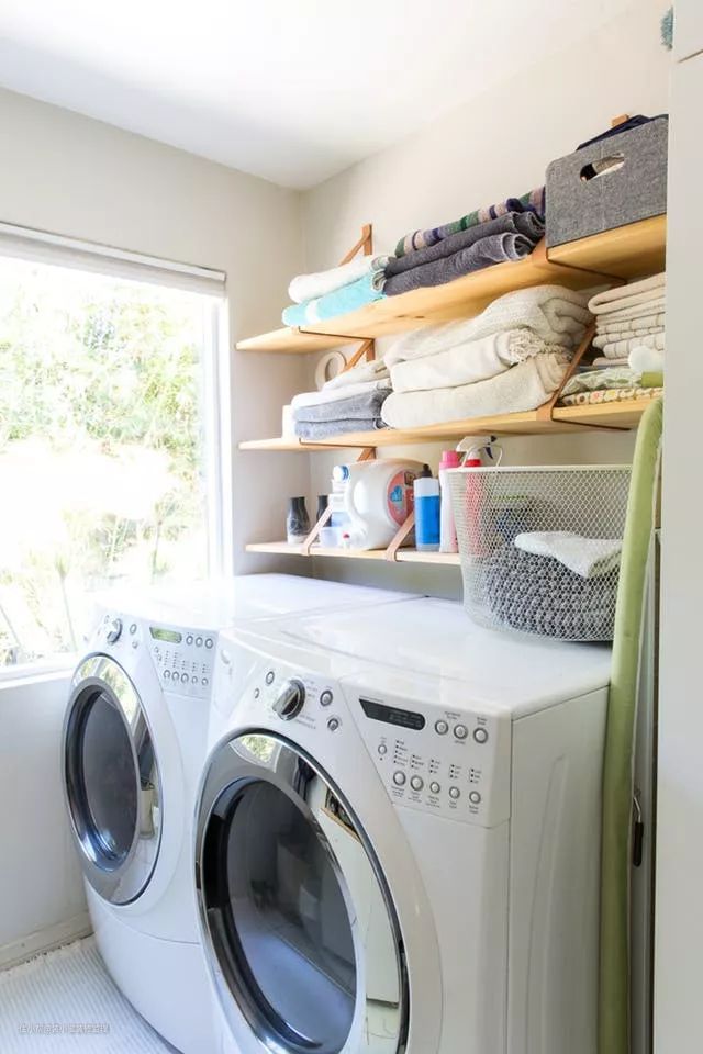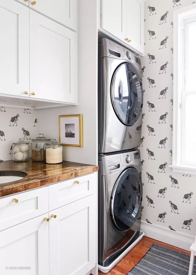 烘干机一般都是紧挨着洗衣机摆放的,这样洗出来的衣服就可以直接扔烘干机里了。烘干机尺寸大小最好买与洗衣机一样的,这样摆放起来比较美观。