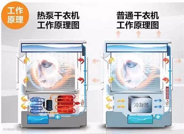 两者真正区别在于:冷凝式的最低冷凝温度是室温,热泵式却可以比室温低很多。而冷凝温度越低,其冷凝形成的冷空气湿度就越低,湿度越低烘干衣物的速度就越快,烘干程度越好。