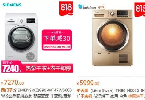 ▲类似容量下,西门子热泵式与小天鹅价格对比