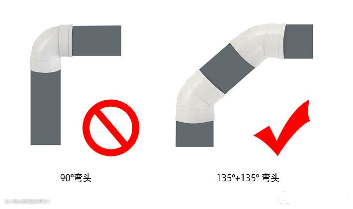 11、为了减少风损和噪音,风管在转90°弯的时候,要用135°+135°弯头来实现;