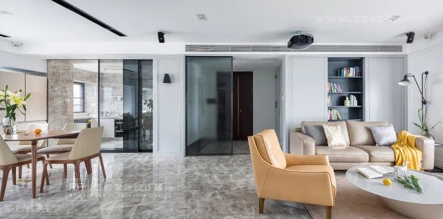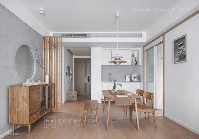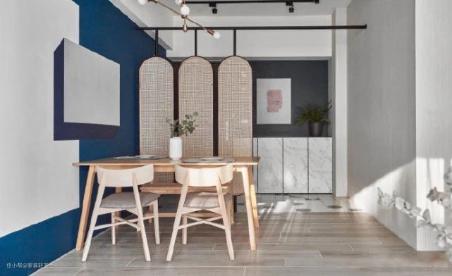 若是家里没有门厅,为了让客餐厅隐私更好,我们可以把隔断加在侧边。