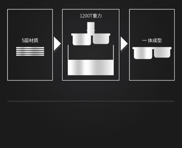 这时国外已经用上了手工不锈钢水槽,于是国内就把不锈钢引进来,而且,我们发明了拉伸技术,把不锈钢水槽变成了平价品,让家家户户都用得起了!
