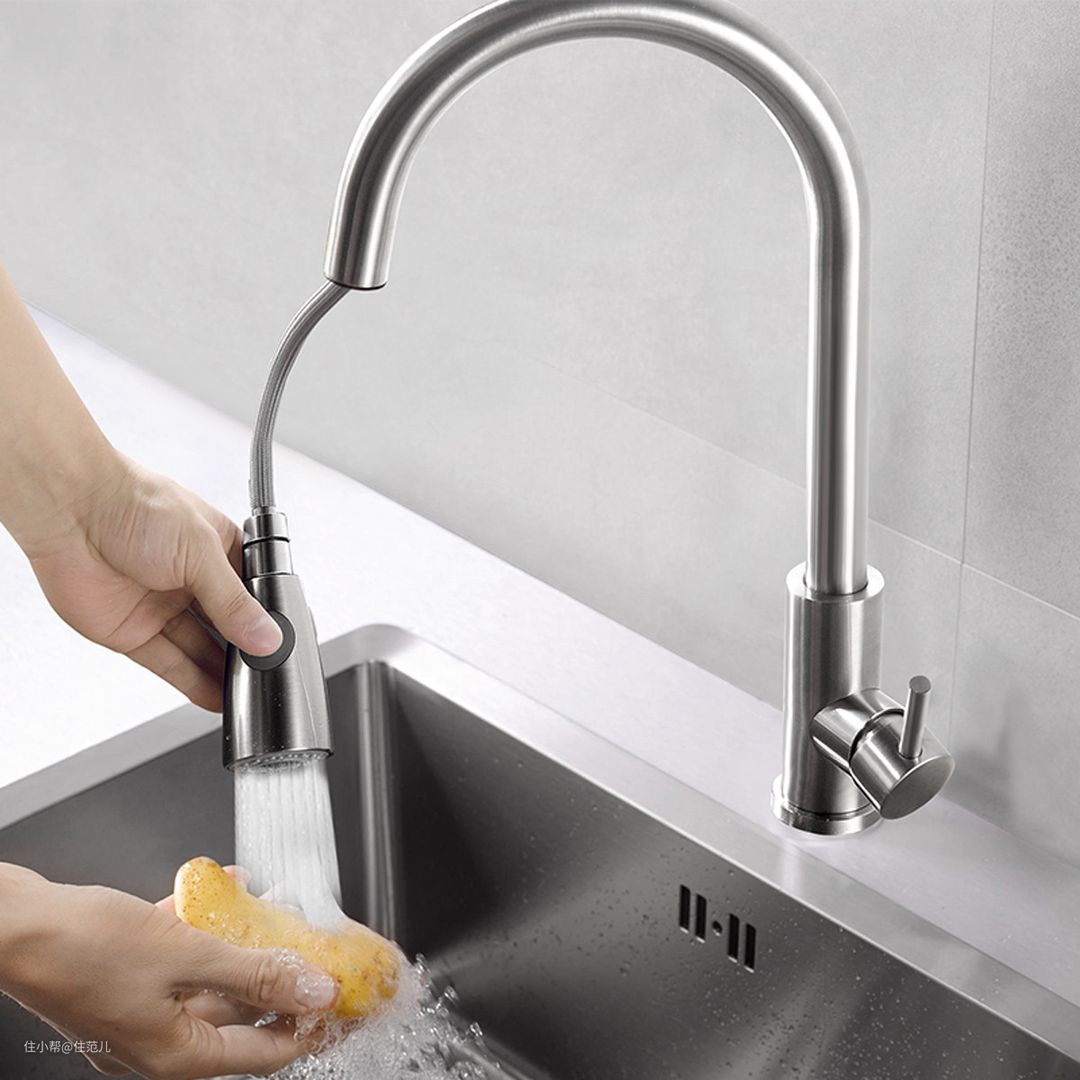 因为抽拉龙头属于比较高档的配置,功能也会做得多一点,通常有2或3种出水模式。
