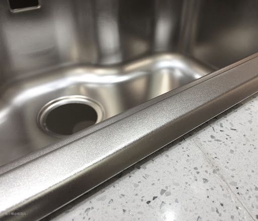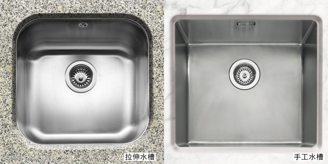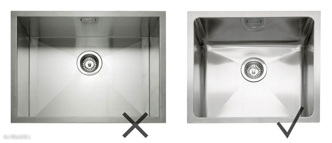 手工水槽也尽量选择有R角的,不要完全的直板拼接,直角容易藏污纳垢抠不出来。