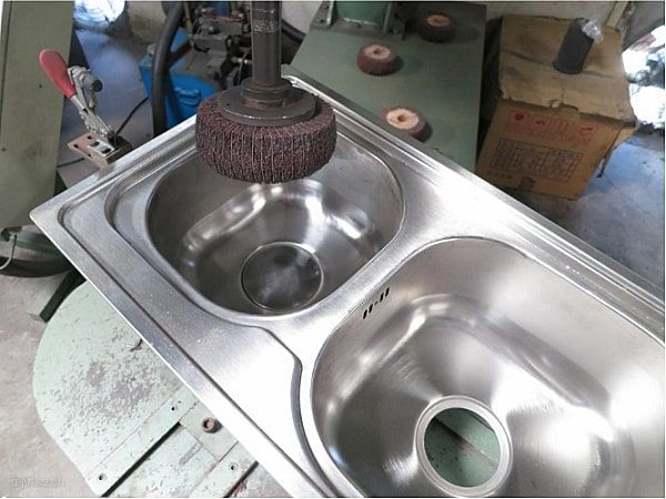 普通的不锈钢水槽,表面是喷砂处理,形成亚光质感的表面。