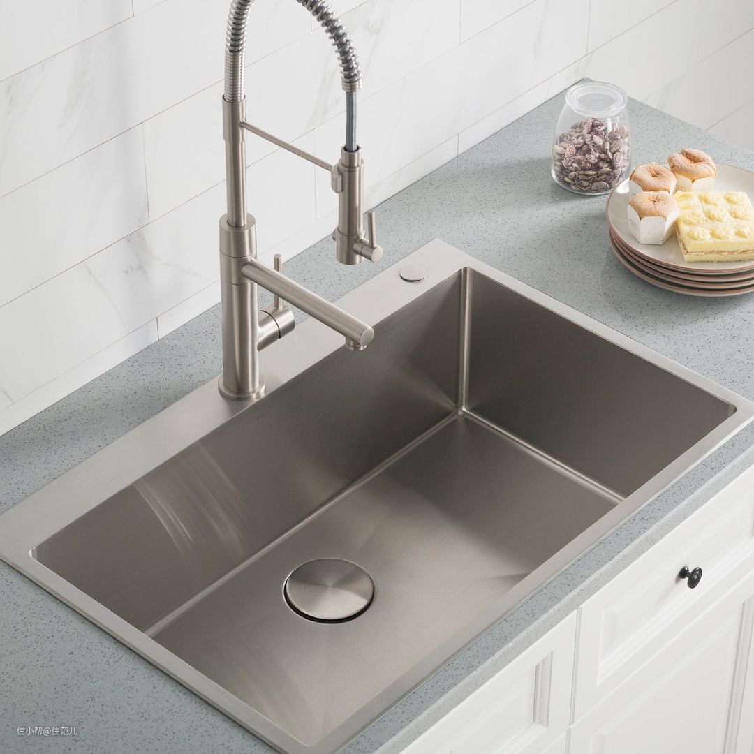 如今,除了主流的不锈钢水槽,相对高端的石材水槽也在普及,以及因为复古风格的流行,陶瓷水槽也迎来一波小众复兴。