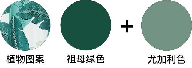 关键颜色:植物图案、祖母绿(软装)、尤加利绿(墙面)