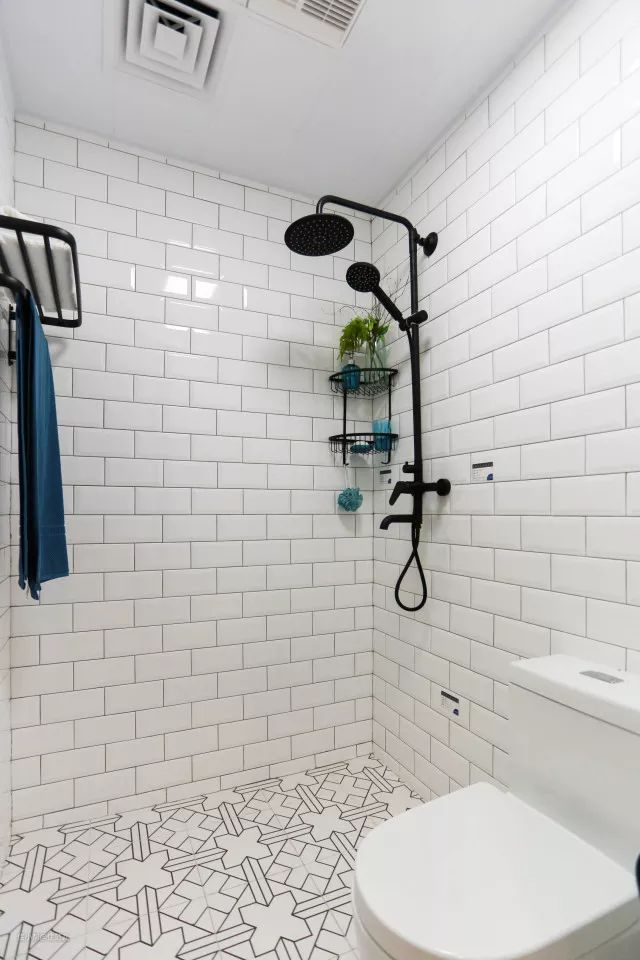 ▲ 本来只有黑白两色的卫生间,不过是一条毛巾,几个沐浴用品,就变成蓝色系的了