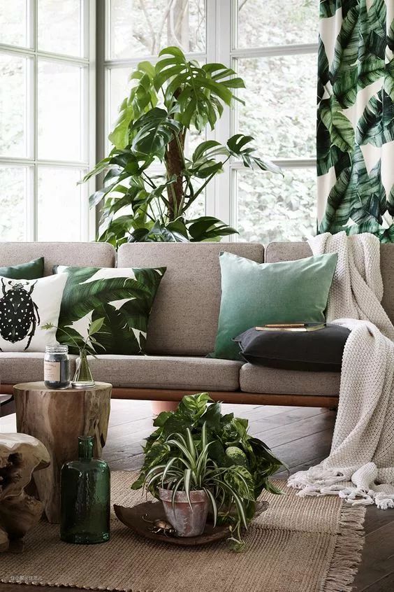 翠绿的植物图案这两年特别火,把浴帘、抱枕换成植物图案,分分钟要变成网红之家。