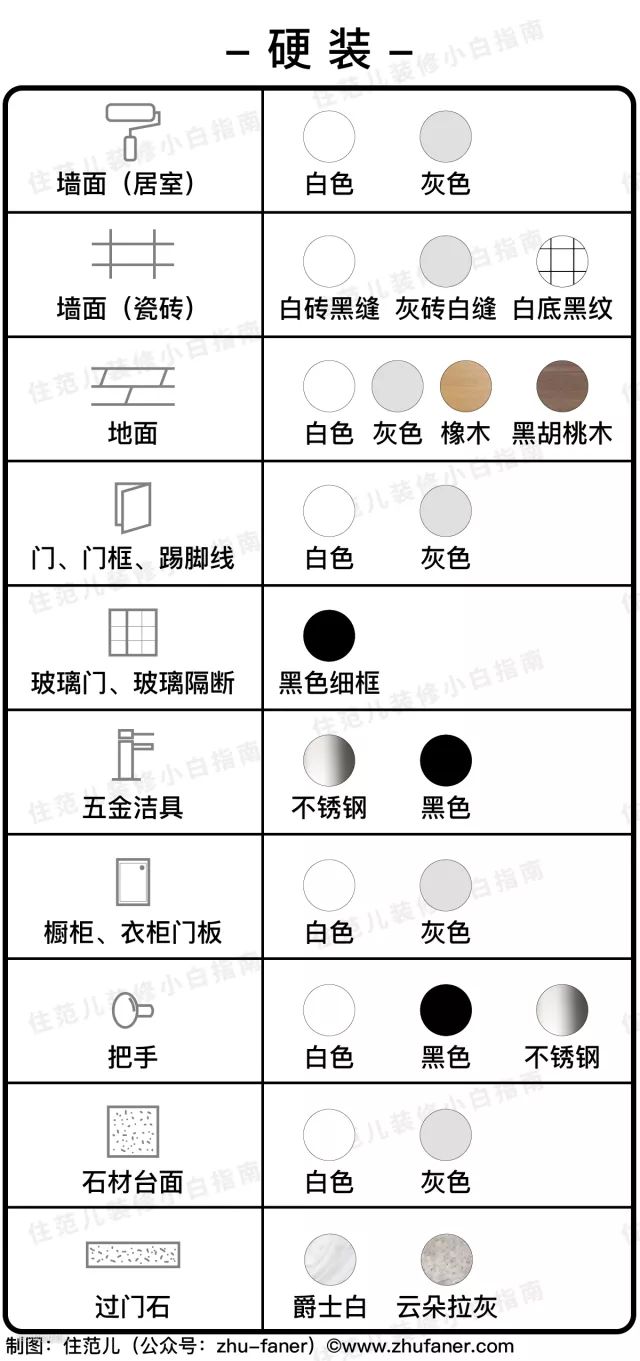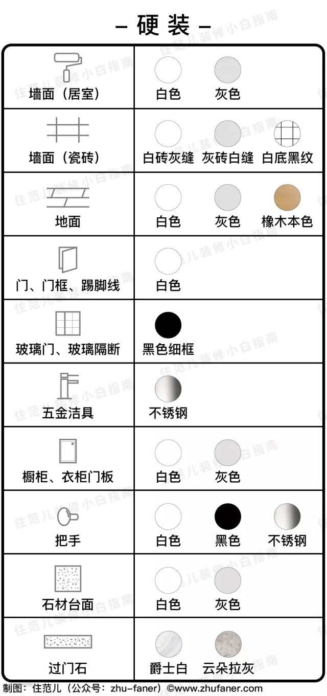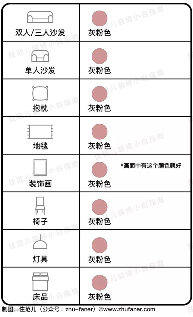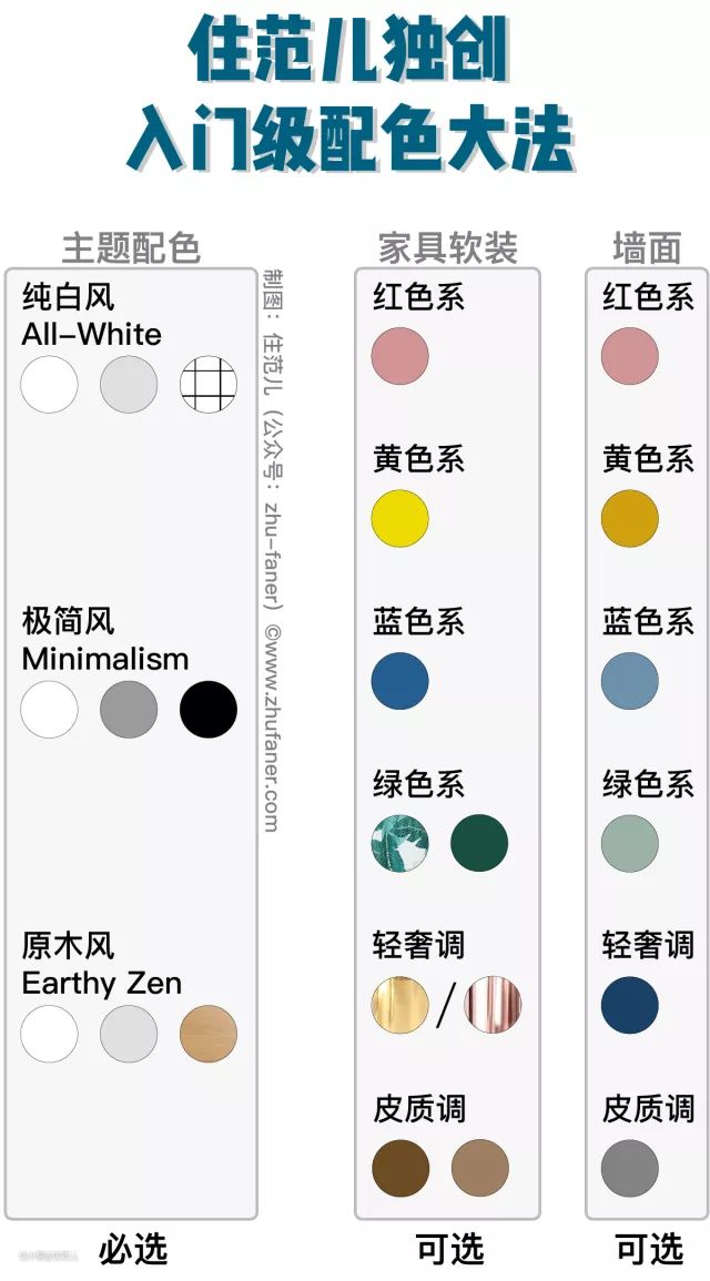 这3个基本款基本可以涵盖了普通人家能用到配色,相应的家具和装修也都是大众款,比较容易找。